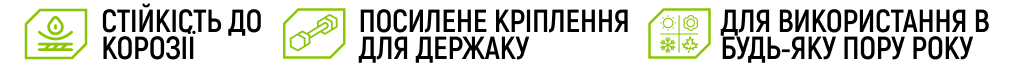 • Особливості: міцне полотно, стійкість до навантажень, зручна форма для легкого проникнення в землю
